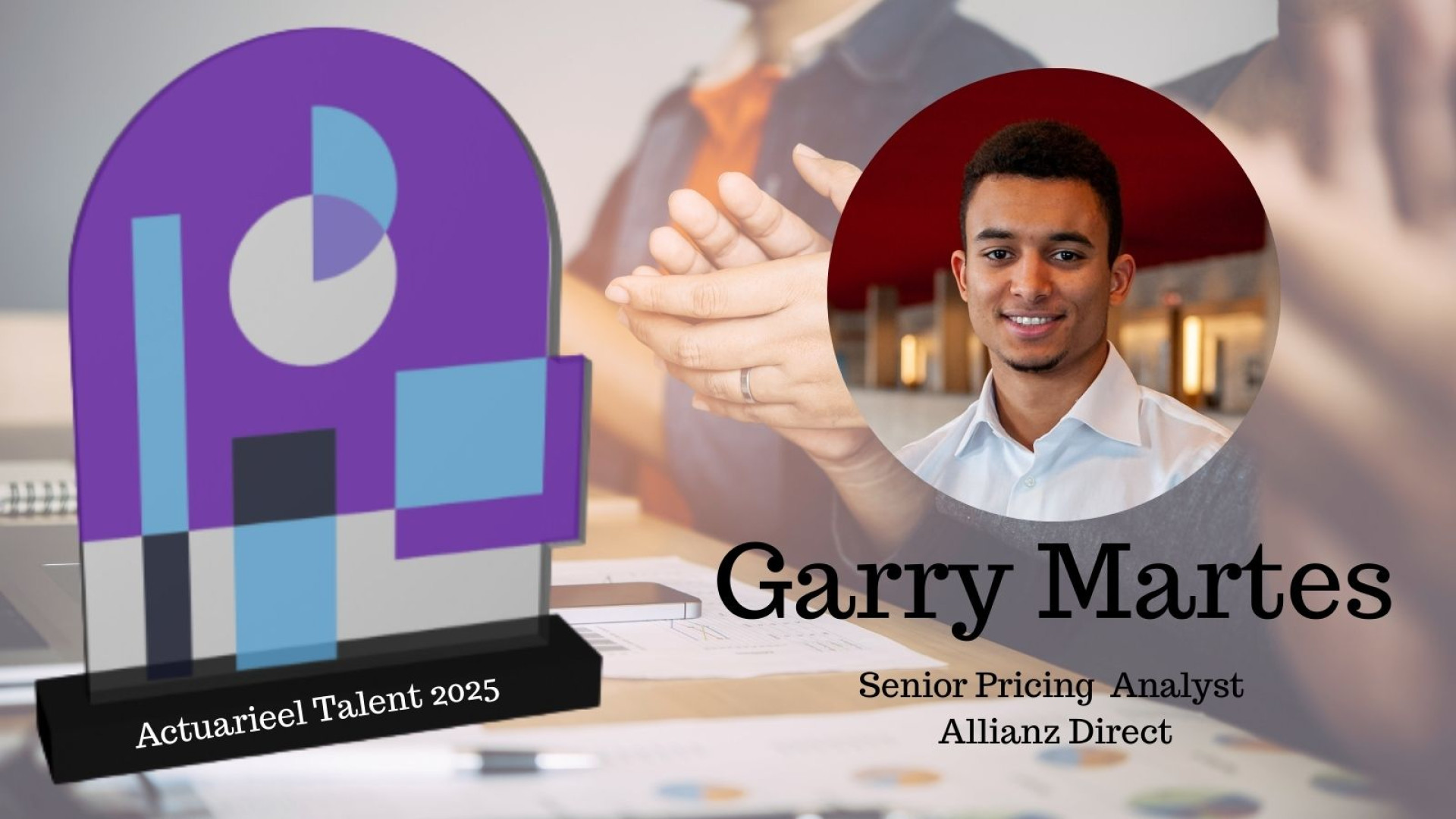 Toen Garry Martes op zijn achttiende van Curaçao naar Nederland kwam, wist hij één ding zeker: hij wilde iets doen met wiskunde. Econometrie bleek de juiste keuze; analytisch stevig en met ruimte voor toepassingen. Maar het was pas tijdens een masterclass van Allianz dat zijn aandacht werd getrokken door een vakgebied dat hij nog nauwelijks kende: schadeverzekeringen. Wat hem aansprak? De dynamiek, de veelzijdigheid én de directe impact van het werk.